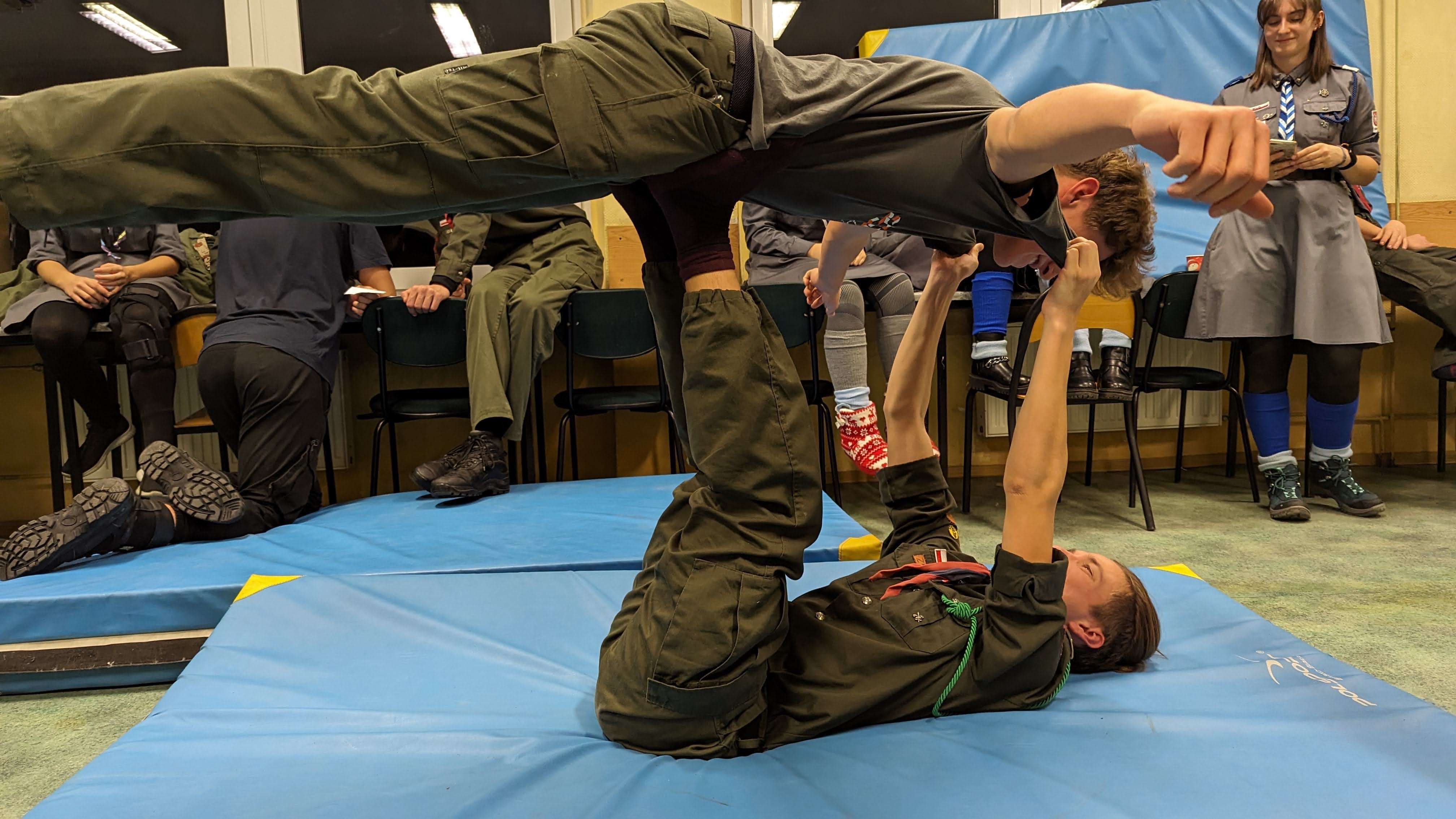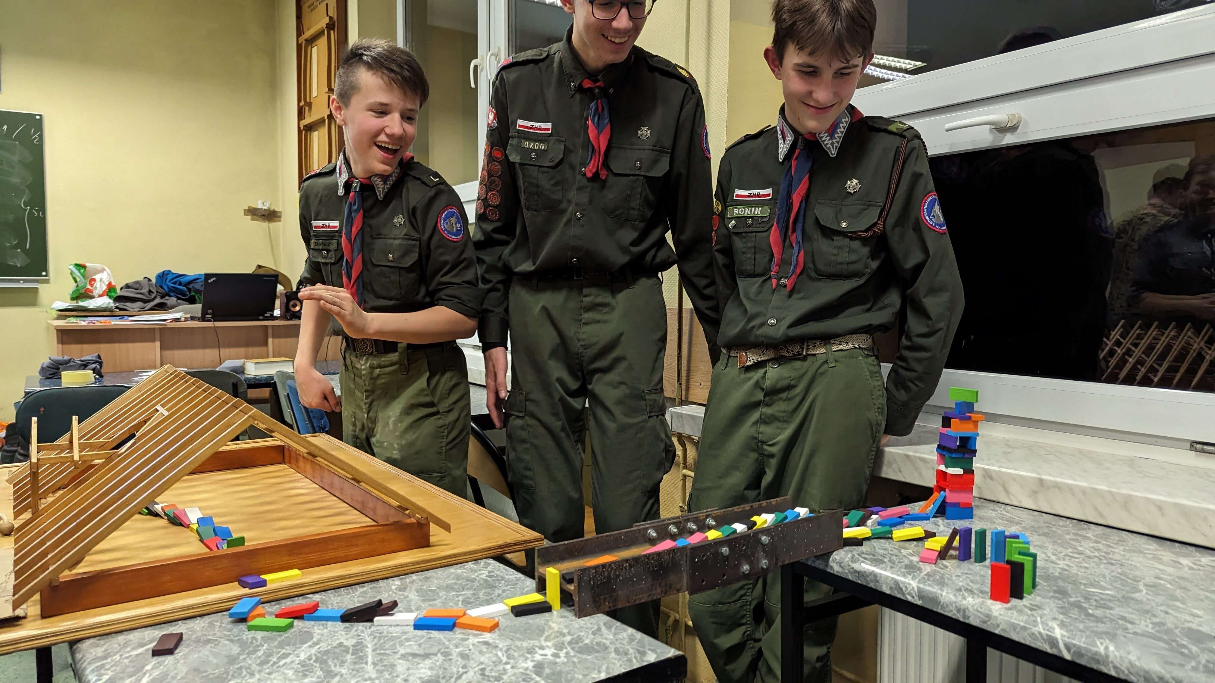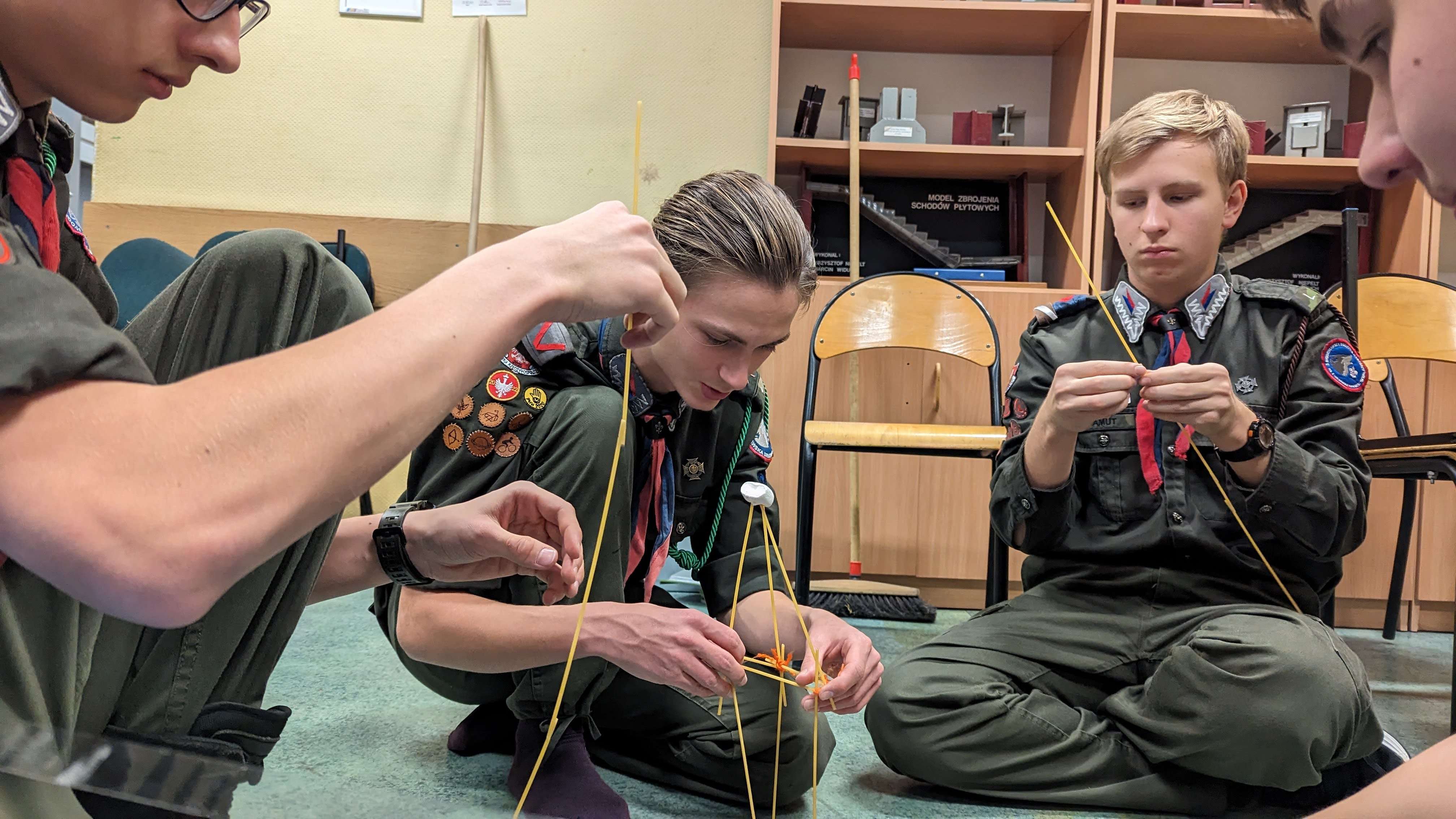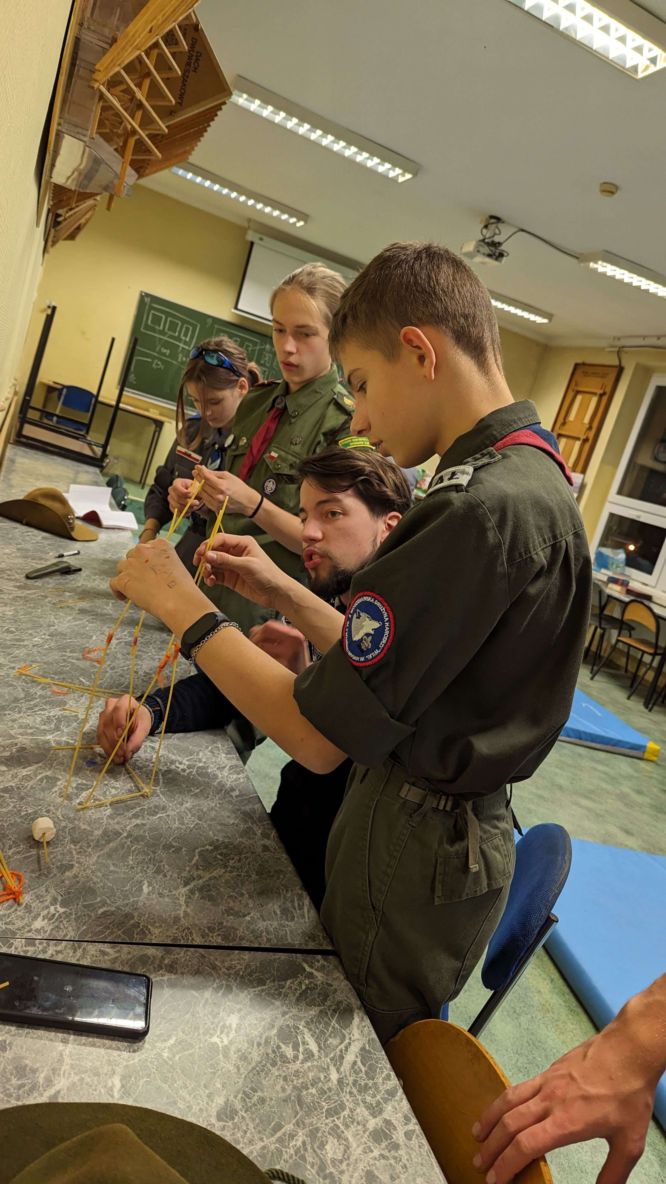 Nie zabrakło różnych konkurencji w mieszanych drużynach, od rozpoznawania kolęd, po budowanie najwyższej wieży z makaronu, po zagadki logiczne czy rywalizacje sportowe. Na koniec rywalizacji wspólnie zbudowaliśmy najwyższy most DaVinci (czyli most wykonany tylko z drewna bez gwoździ, kołków czy sznurka).